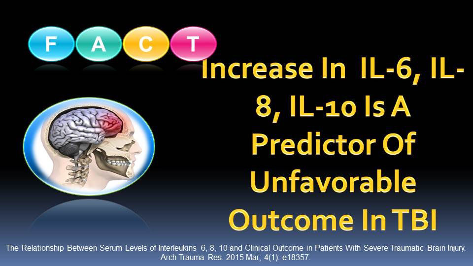 The Relationship Between Serum Levels of Interleukins 6, 8, 10 and Clinical Outcome in Patients With Severe Traumatic Brain Injury.