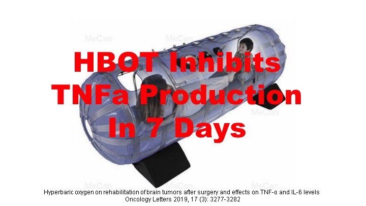 1 Hour of HBOT at 2.4 atm once a day every day produced significant lowering of TNF-A and IL-1B within 4 days and continued decreasing levels at 7 days.
